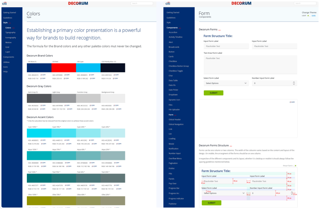 | The tech team was divided into groups based on region and vendor, with each following a different pattern of code practise. | By defining a design system with colour standards for accessibility, components. Globalisation of the layout structure and interaction functions improves consistency across the application significantly. |
