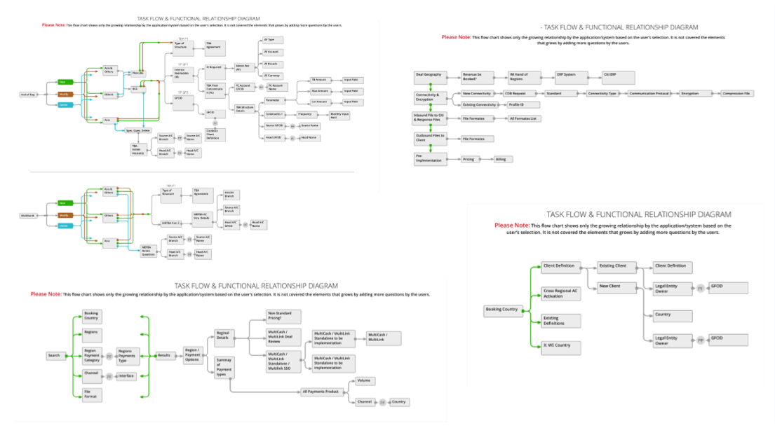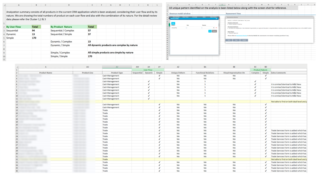 There are over 200 products in the CRM application; I began my review by identifying and classifying all products and categories into three major groups based on their user flow and two sub-categories based on their nature. This exercise allows me to focus my attention on the most complex products. It also assisted me in identifying three key products that are essential for deal creation.